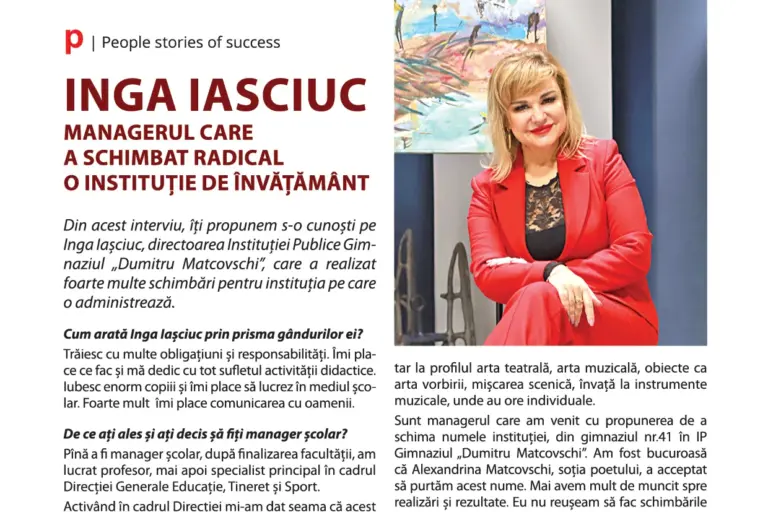 Din acest interviu, îți propunem s-o cunoşti pe Inga lasciuc, directoarea Instituției Publice Gimnaziul „Dumitru Matcovschi», care a realizat foarte multe schimbări pentru instituţia pe care o administrează.