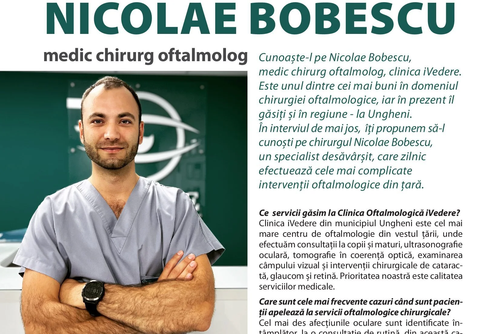 Cunoaște-l pe Nicolae Bobescu,mai medic chirurg oftalmolog, clinica iVedere. Este unul dintre cei mai buni în domeniul chirurgiei oftalmologice, iar în prezent îl găsiți și în regiune la Ungheni. În interviul de mai jos, îţi propunem să-l cunoşti pe chirurgul Nicolae Bobescu,